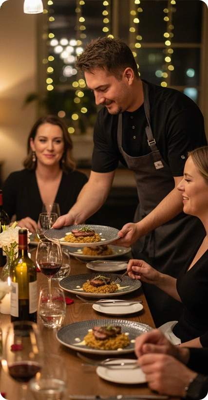 Nuestro servicio de chef privado incluye la planificación del menú personalizado, la compra de ingredientes frescos, la preparación de los platos en tu cocina, el servicio en mesa y la limpieza posterior. Nos encargamos de todos los detalles, para que puedas disfrutar de tu evento sin preocupaciones.